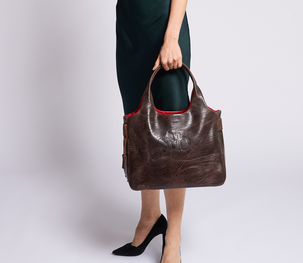 On the outside: Grained buffalo hide | Colour: dark brown